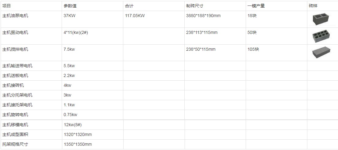 二、YH-MT18 免托板磚機技術參數(shù)表: